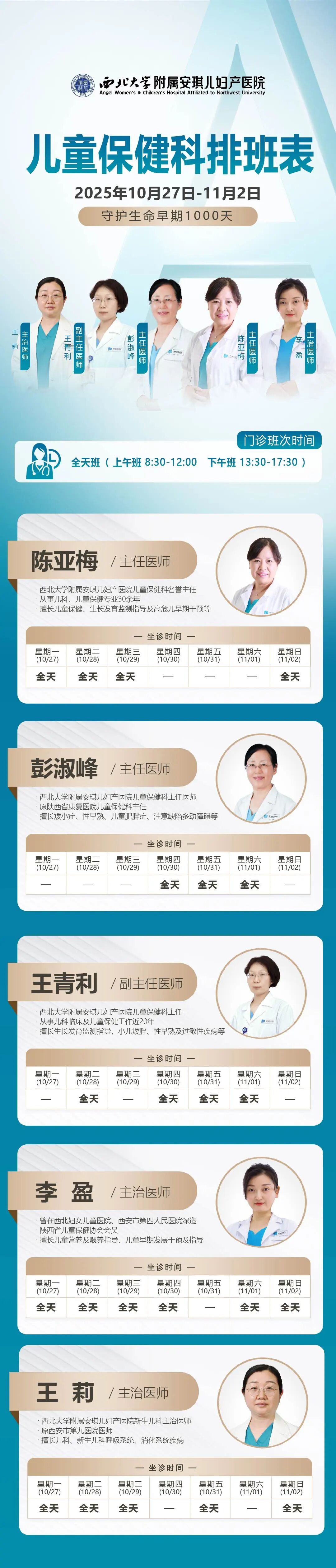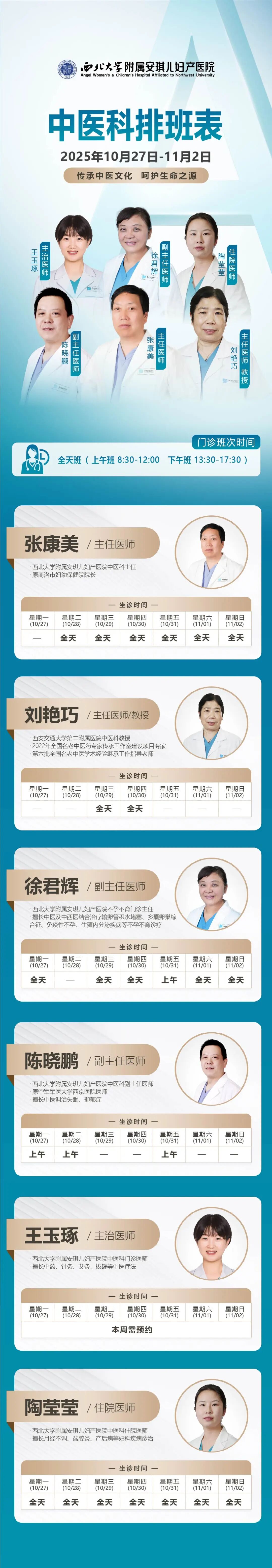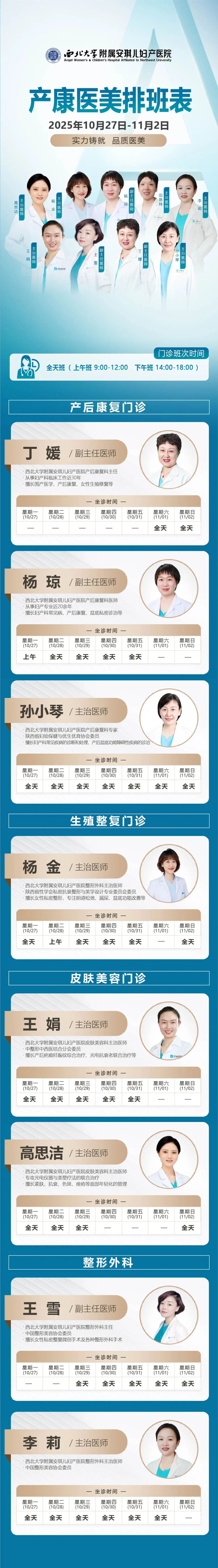 西安安琪儿妇产医院(10月27日至11月2日)专家坐诊时间表